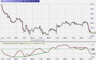 Cet exemple présente les bandes Mogalef sur l'indice Dax.