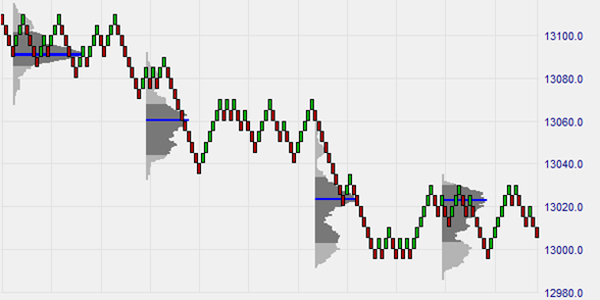 Volume Profile montre l’activité du marché à certains niveaux de prix. Il affiche la distribution de prix sur une période déterminée. Le Volume Profile peut être affiché dans le graphique principal ou dans une sous-fenêtre du graphique principal. Les données utilisées pour calculer le Volume Profile sont indépendantes du graphique principal. Un chargement en ticks permettra la meilleure précision pour le Volume Profile, néanmoins, le temps de chargement risque d’être long et la quantité de données historiques limitée. Vous pouvez choisir votre agrégation serveur favorite dans la Barre de Personnalisation.